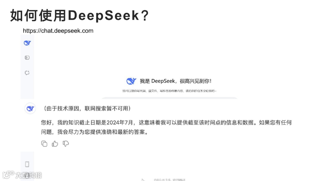 访问平台方式、DeepSeek基本功能、联网搜索与文件上传。