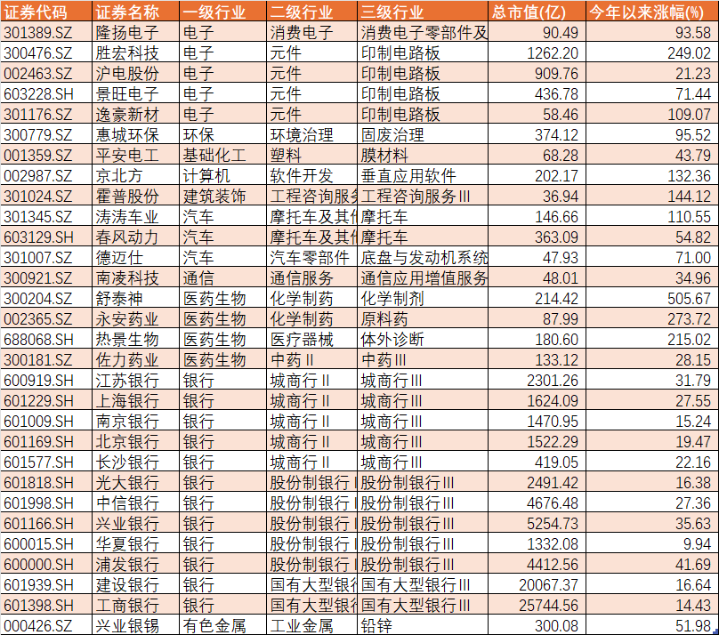 截至7月4日,剔除今年发行新股,创下历史新高个股共有30只,主要集中在银行、电子、汽车和医药生物等行业板块。如果只考虑今年以来涨跌幅,那么创下新高个股有205只,相比上周242只有所减少。