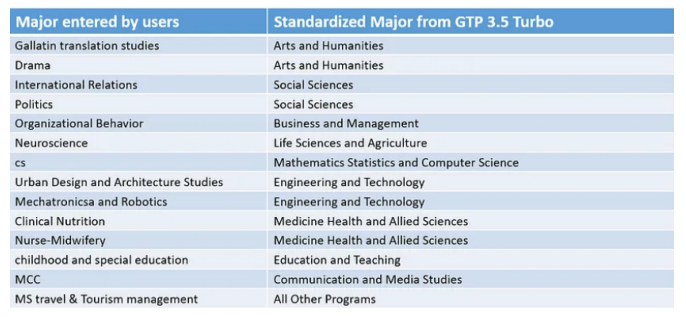 开个玩笑,我们的客户之一是Study Fetch(https://www.studyfetch.com/),这是一个AI驱动的平台,利用课程材料为学生创建个性化的全方位学习套件。他们在大学生中进行了一项调查,收到了超过10,000个反馈。然而,他们的首席执行官兼联合创始人Esan Durrani遇到了一个小问题。原来,在调查中,"主修"字段是一个自由形式的文本框,这意味着回答者可以输入任何内容。作为数据科学家,我们知道这对于进行统计计算来说绝对不是一个明智的选择。所以,从调查中获得的原始数据看起来像这样...
