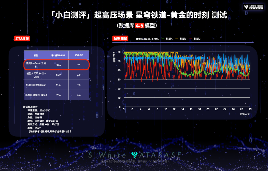 超高压场景《星穹铁道》:平均帧率50.6FPS(满帧60),功耗7.1W。