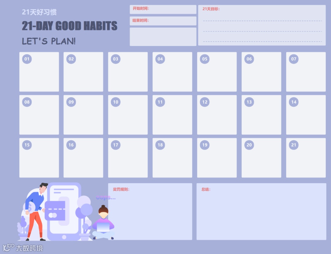 行为心理学中,人们把一个人的新习惯的形成并得以巩固至少需要21天的现象,称为21天效应。21天计划表,可以帮你重塑自己哦!