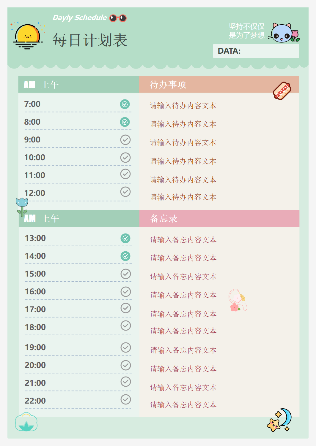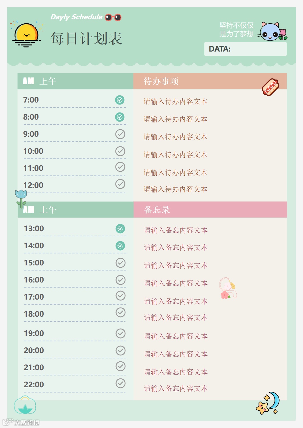 1、每日计划表