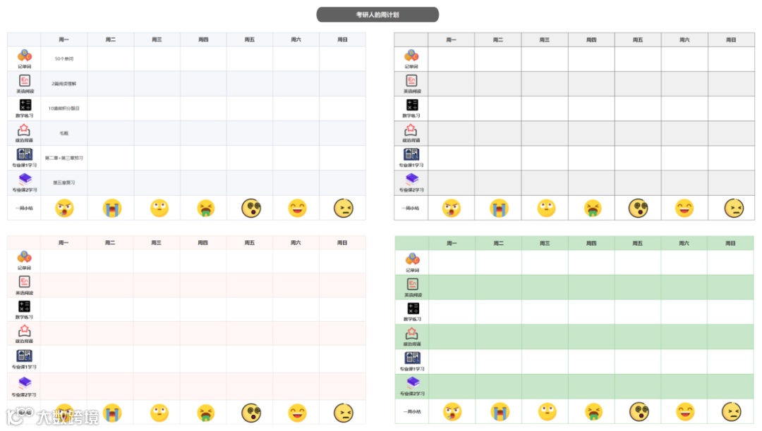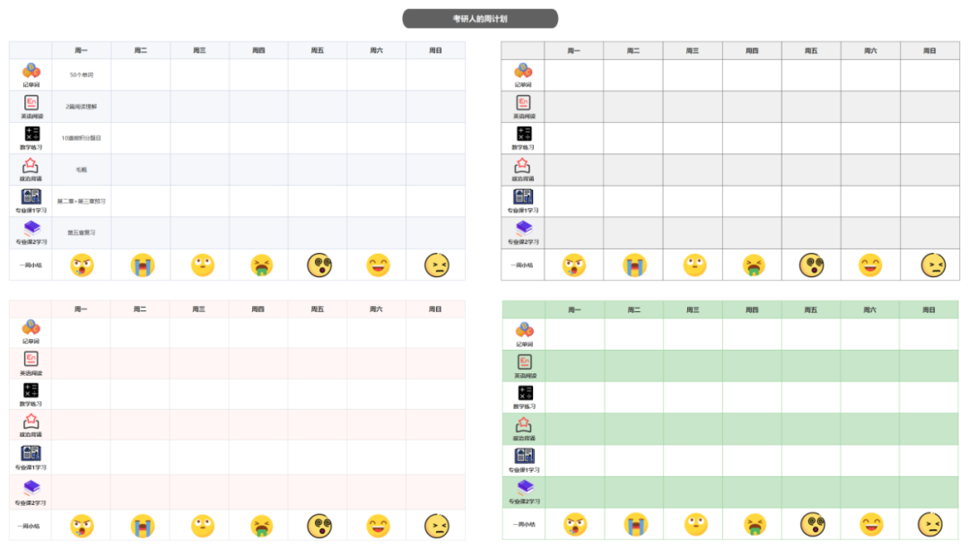 小编准备了一些计划表模板给大家,供大家参考,也可以直接克隆使用。
