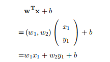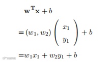 其中x是数据集特征空间的一个特征向量,w是对应的法向量,b可以理解成截距。对