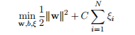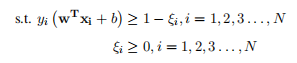 其中C为惩罚系数,一般取决于实际情况,C的值越大,说明惩罚的强度越大,也说明 对误分类点惩罚越大(可以简单理解成对分类错误宽容度就越差,太大了容易导致过拟合)。最终软边界的原始问题就写成: