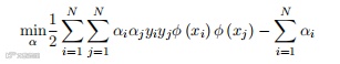 若核函数ϕ (xi) ϕ (xj )为正定核,则该对偶问题是凸二次规划问题,也就可以求得最优解。