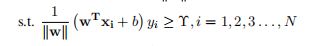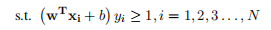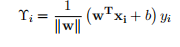 其中 (1.1.3) 为样本数据点到超平面的边界,注意这里右边式子乘 yi 是因为分类结果是取决于 w · x + b 和分类的标签 yi 两者的符号的一致性。
