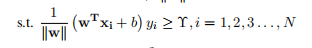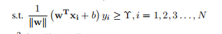这里找到了到样本点到最小距离的两个分离超平面,接下来求边界函数的最大值,即找到最大边界超平面求解最优化问题: