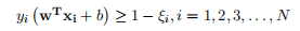 对于处理近似线性可分的数据,可以对原来线性可分的最优化问题进行改进,容许一些异常或者例外的数据,这里通过对每一个样本都引人一个松驰变量ξ 来使函数间隔大于等于1,相当于放宽了求解条件,所以将原有约束条件改成: