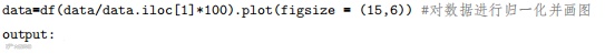 读完数据之后,明显可以看到各个列的数据量级是有差异的,比如开盘价(Open) 和钱的总量(Money)。应用的第一步,需要对数据集进行标准化处理。大致了解数据的结构以及数据具体含义情况之后,对数据进行预处理(Preprocessing)。由于各个特征数据的量级以及分布都无法完全一致,会导致在利用机器学习算法训练的时候预估结果不准,所以需要对数据进行预处理,也可以说归一化处理 (Normalization)。主要目的就是把所有数据统一成一个标准,在不改变数据本身意义的前提下,对数据进行一次“美容”。归一化处理之后的数据可以直接输入到机器学习模型中进行训练。在这里将所有数据初始值设为100来进行归一化, 这样不仅可以方便分析数据,也可以方便做图从而看出走势。