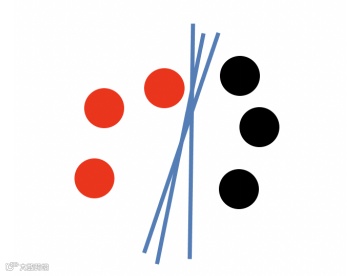图1.1-1 二分类问题可以有无数条分割线来对其分类