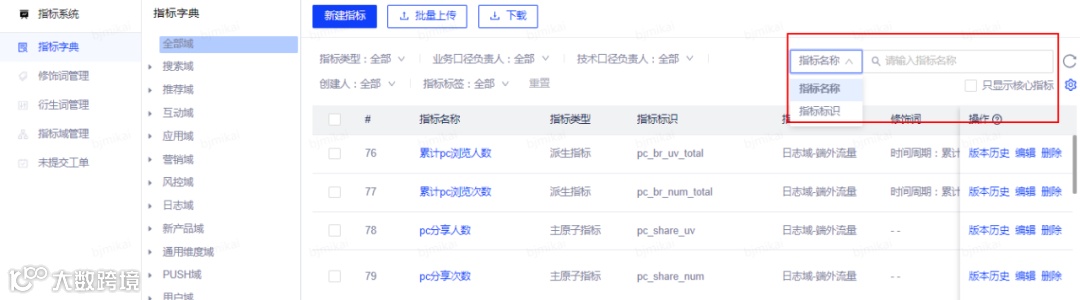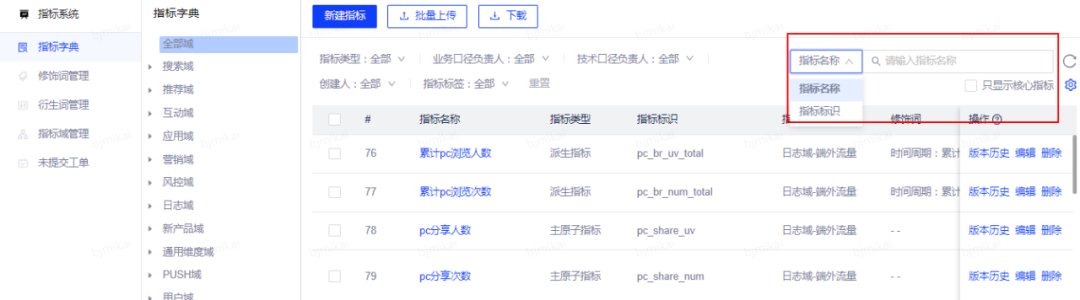 度量/原子指标:原子指标和度量含义相同,某一业务行为事件下的度量,是业务定义中不可拆分的指标,如推荐量、搜索次数。