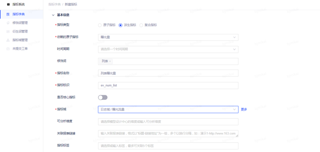 存量型:指标是指对实体对象某些状态的统计,例如文章总数、用户总数,这类指标需维护原子指标及修饰词,在此基础上创建派生指标,对应的时间周期一般为“历史截至当前某时间”。