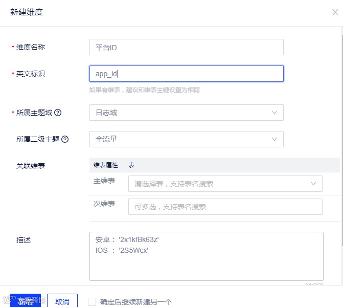 维度属性:维度属性隶属于维度,相当于维度的具体说明,如用户维度中性别为男、女。