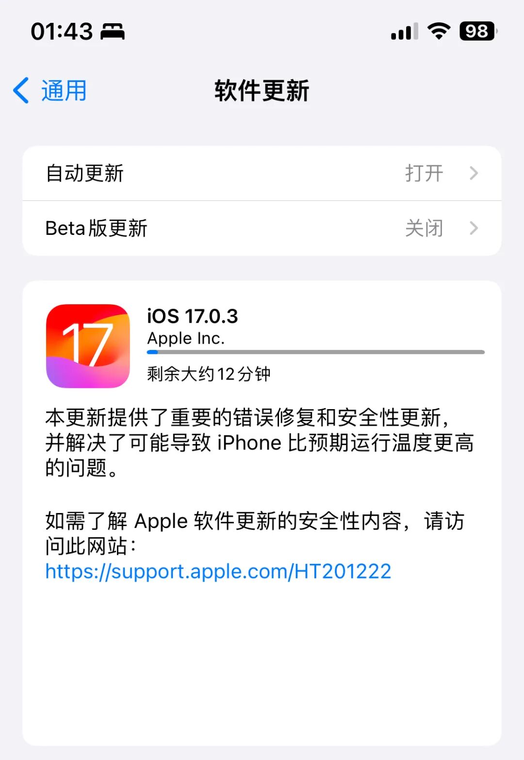 【苹果】iOS 17.0.3正式版推送 解决iPhone温度更高问题