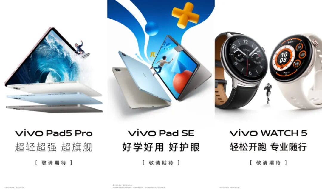 安卓旗舰性能平板vivo Pad5 Pro、学生平板vivo Pad SE、健康手表vivo WATCH 5。爆料vivo Pad5 Pro将采用