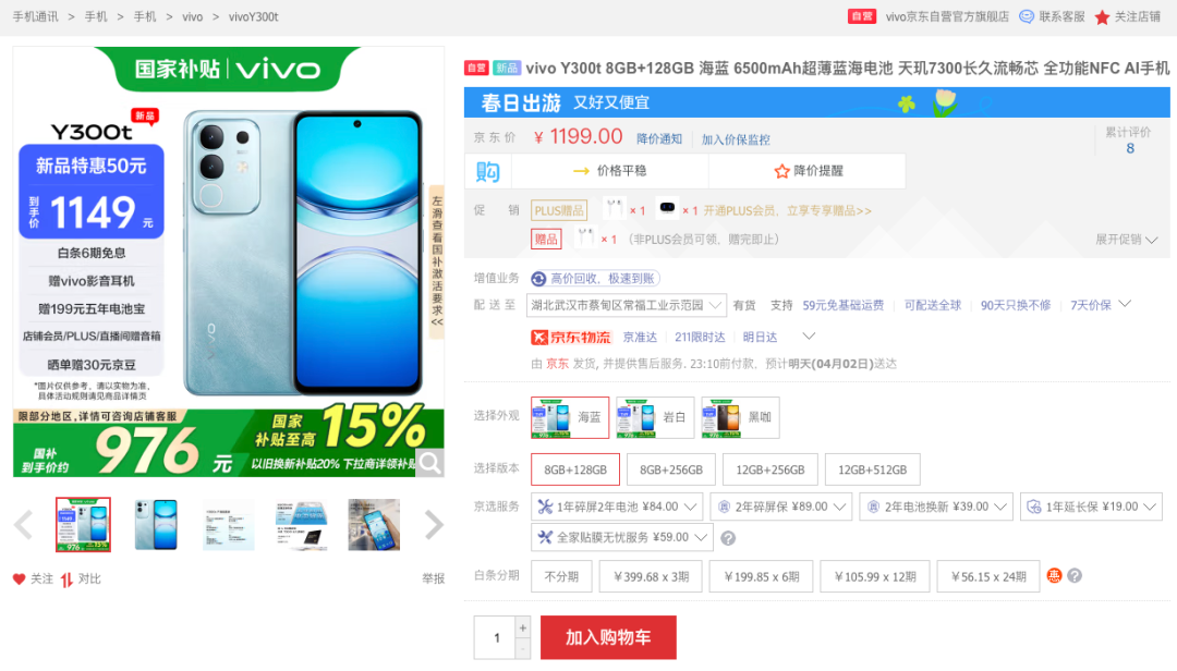 价格上,vivo Y300t:8+128GB版售价1199元,8+256GB版售价1299元,12+256GB版1499元,12+512GB版1699元,支持国补,国补后到手价预计最低约976元起,目前已可以购买,大家觉得这配置价格如何?