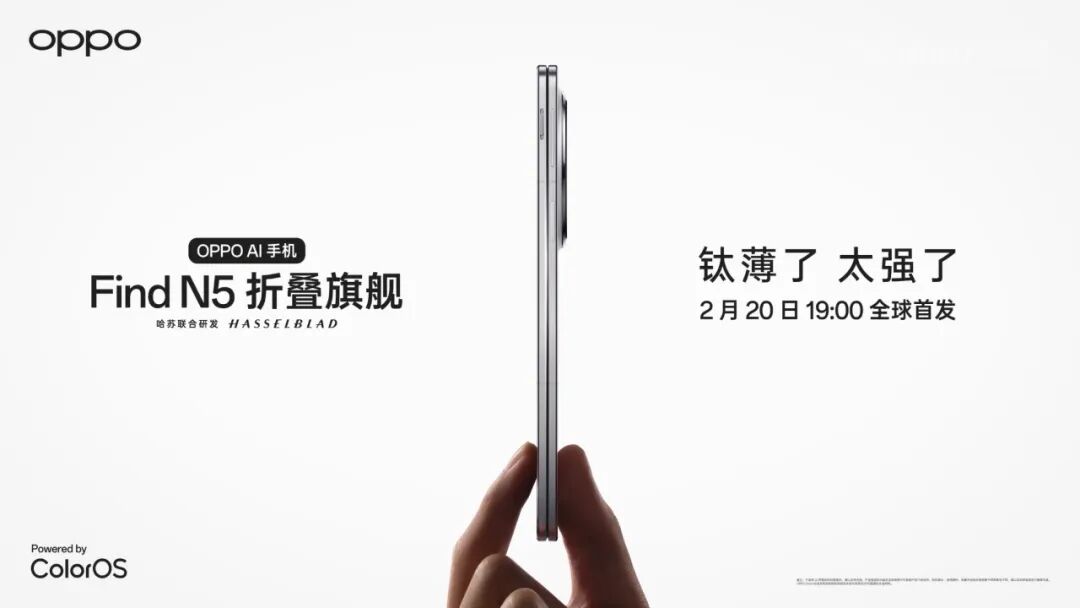 如上图所见,Find N5将于2月20日19点发布,官方海报Slogan是“钛薄了,太强了”。