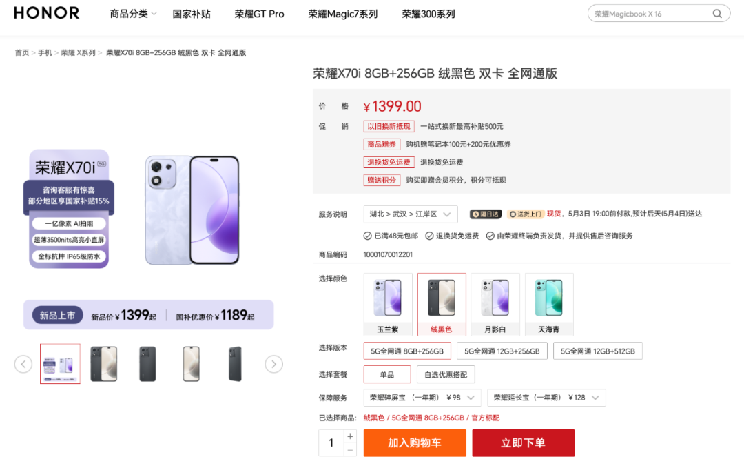 近日荣耀商城上架了一款新机——荣耀70i,来简单汇总下配置价格~