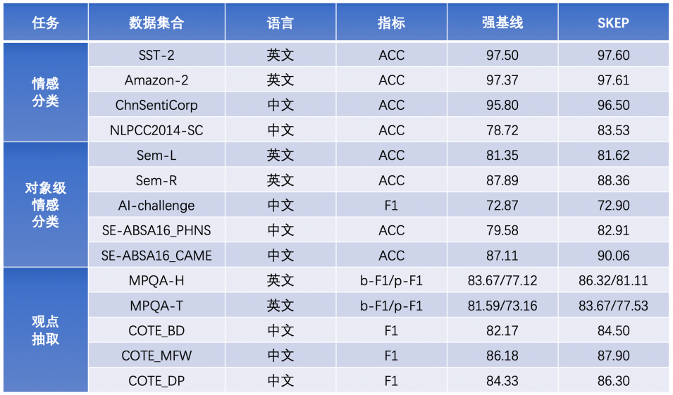 覆盖任务全:集成句子级情感分类、评论观点抽取、属性级情感分类等多种情感分析能力,并开源模型,且打通模型训练、评估、预测部署全流程。