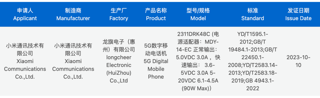 如上图所见,3C认证显示Redmi K70在10月10日获得3C认证, 配备最高90W充电器。相比K60的67W充电来说升级不少~