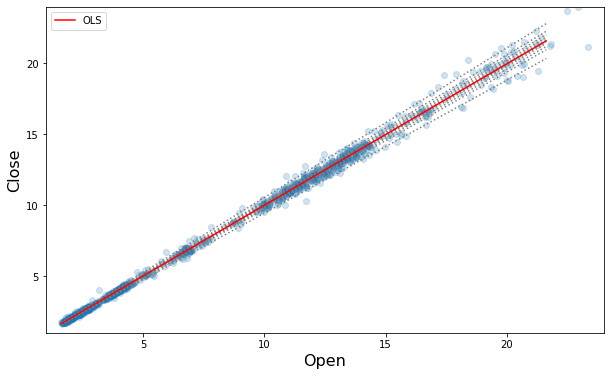 ols = smf.ols('Close ~ Open', dataset).fit()