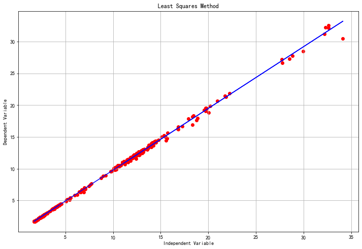 Statsmodels中线性回归用的是最小二乘法,而最小二乘法是拟合回归线最常用的方法。该方法通过使每个数据点到直线的垂直偏差平方和最小化来计算观测数据的最佳拟合直线。