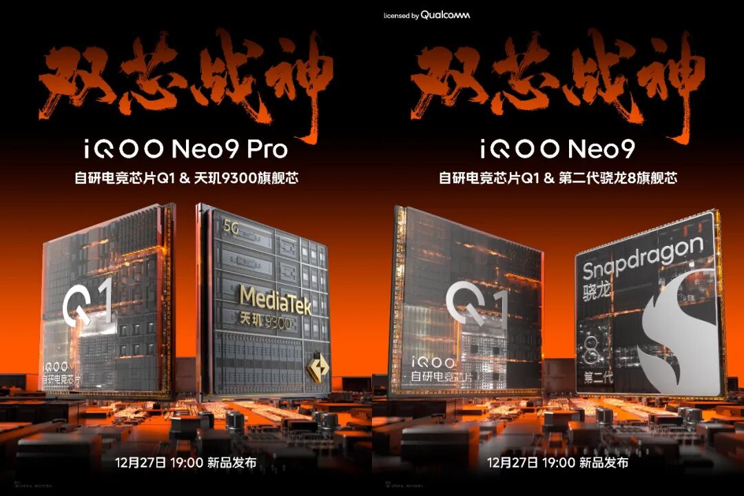 手机方面,官方预热称iQOO Neo9、Neo9 Pro全系配备自研电竞芯片Q1,其中Neo9搭载骁龙8Gen2处理器,Neo9 Pro则搭载天玑9300处理器。