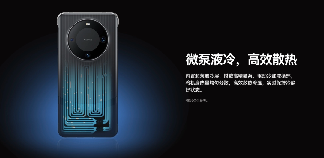 官方介绍称华为Mate 60 Pro/Pro+微泵液冷壳采用超清纤薄设计,配备“星弧”形可视背面透窗,可看到内部的液冷循环;内置超薄液冷层,搭载高精微泵,壳驱动冷却液循环,可将机身热量均匀分散、高效散热降温;