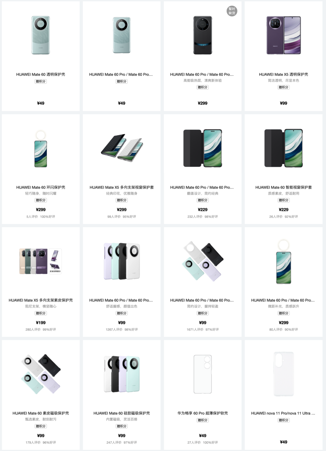 在华为Mate 60系列上架后,华为官方也为新机陆续上架了多款保护壳。