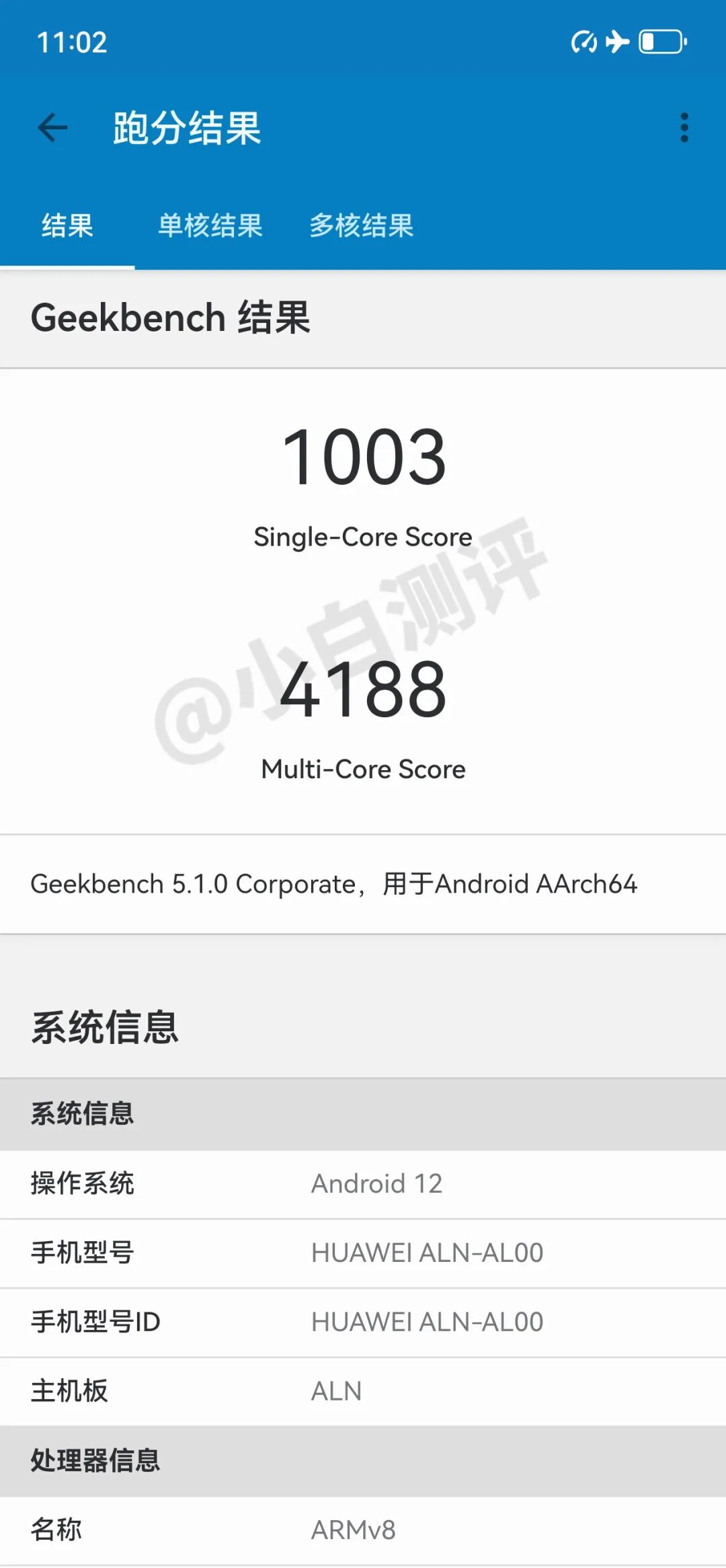 通过调整Geekbench5线程数,华为Mate60 Pro的麒麟9000s跑出了单核1003分,多核4188分的成绩。多核成绩相比默认线程的约3700分,提升约13%,应该是麒麟9000s超线程起作用了。