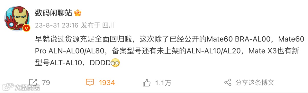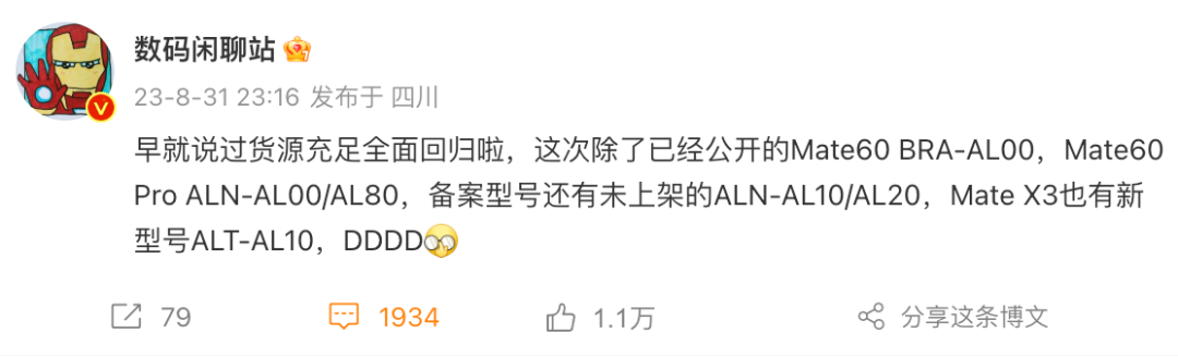 目前华为先后上架了Mate60 Pro和Mate 60两款机型,按照爆料来说还有Mate 60 Pro+和Mate 60 RS在路上,只是目前暂时不确定何时上架。