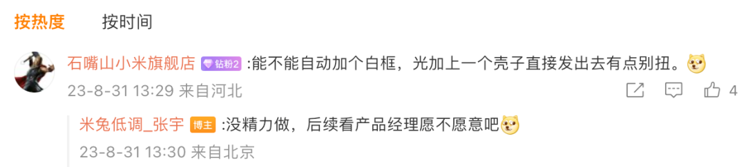 细节上,Redmi K60至尊版暂时无带壳截图,其表示应该是要跟着系统更新走,后续这个带壳截图整合到系统包里,大家别着急。至于带壳截图这个功能的意义,其解释道主要是为了区分机型、更有仪式感。像我个人之前截图分享的时候偶尔也会专门下载可以套壳的第三方软件使用,你平时截图会开启套壳吗?