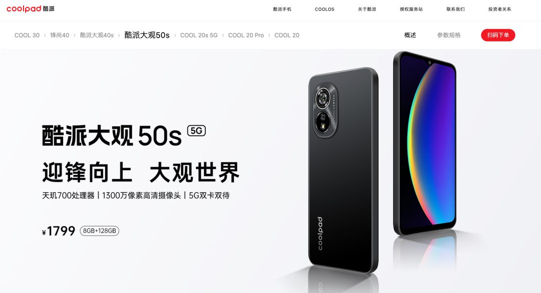 价格上,酷派大观50s官网仅有8+128GB一个版本,售价1799元。