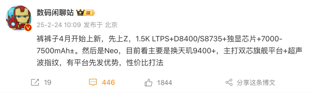 此前消息称vivo可能在4月中下旬更新X200 Ultra和X200S,现据最新爆料,不止vivo X系列会在4月更新,iQOO多款新机也将在4月开始陆续上新。