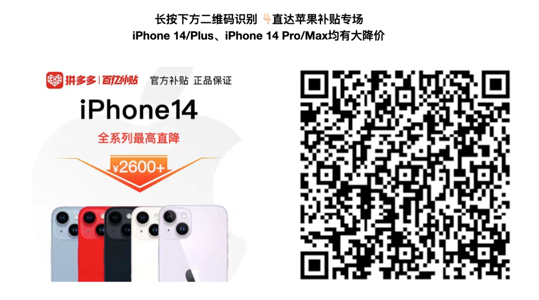 iPhone 14系列配置不用多介绍,想冲iPhone的现在最佳选择,百亿补贴最高直降2600+!具体iPhone 14百亿补贴到手价5029元起。