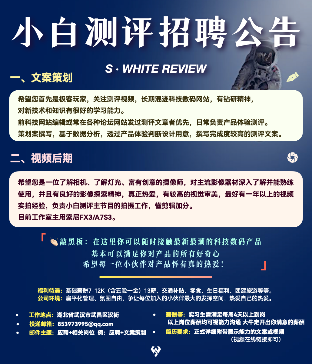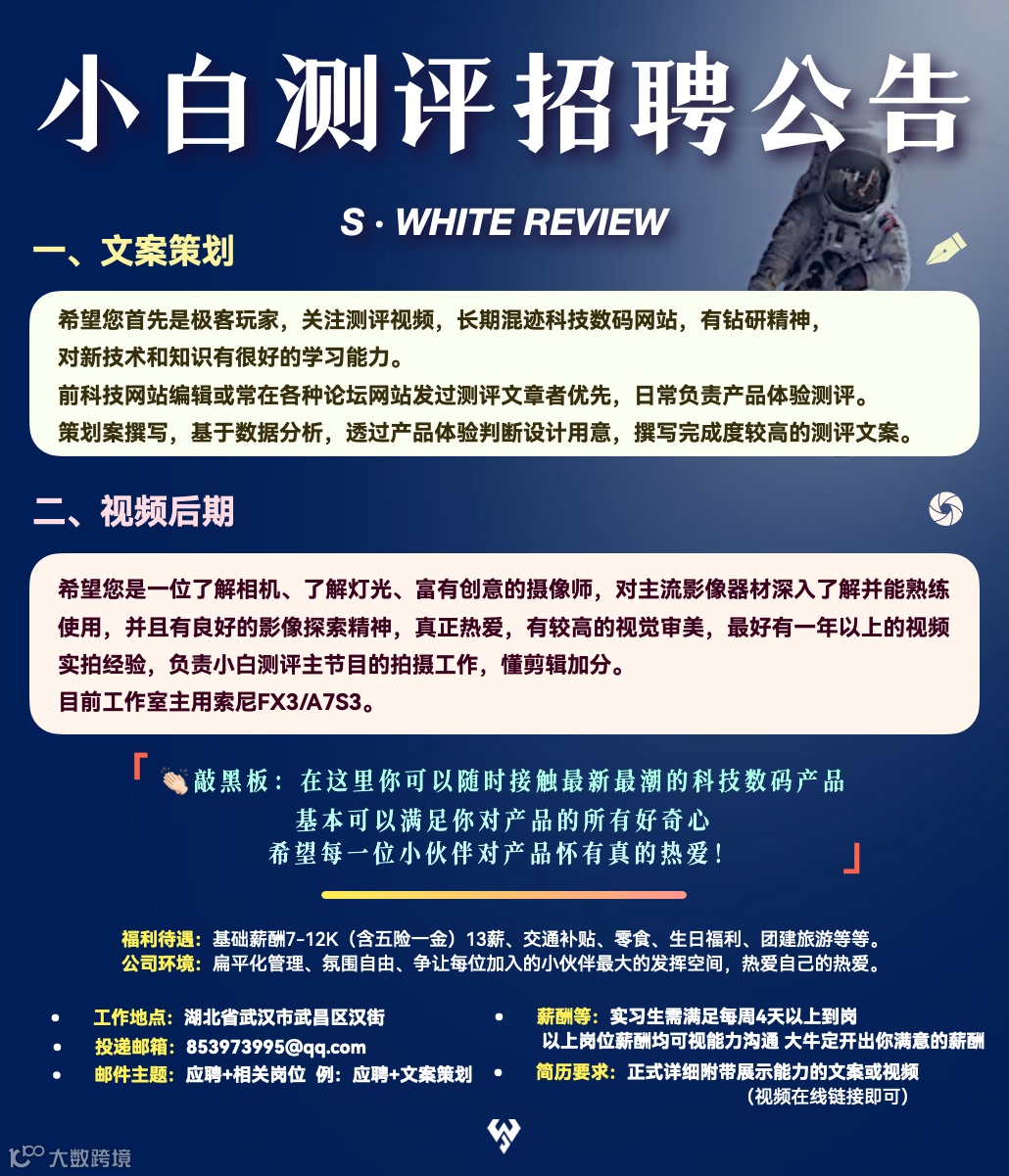 小白测评招聘公告 简历投递邮箱853973995@qq.com