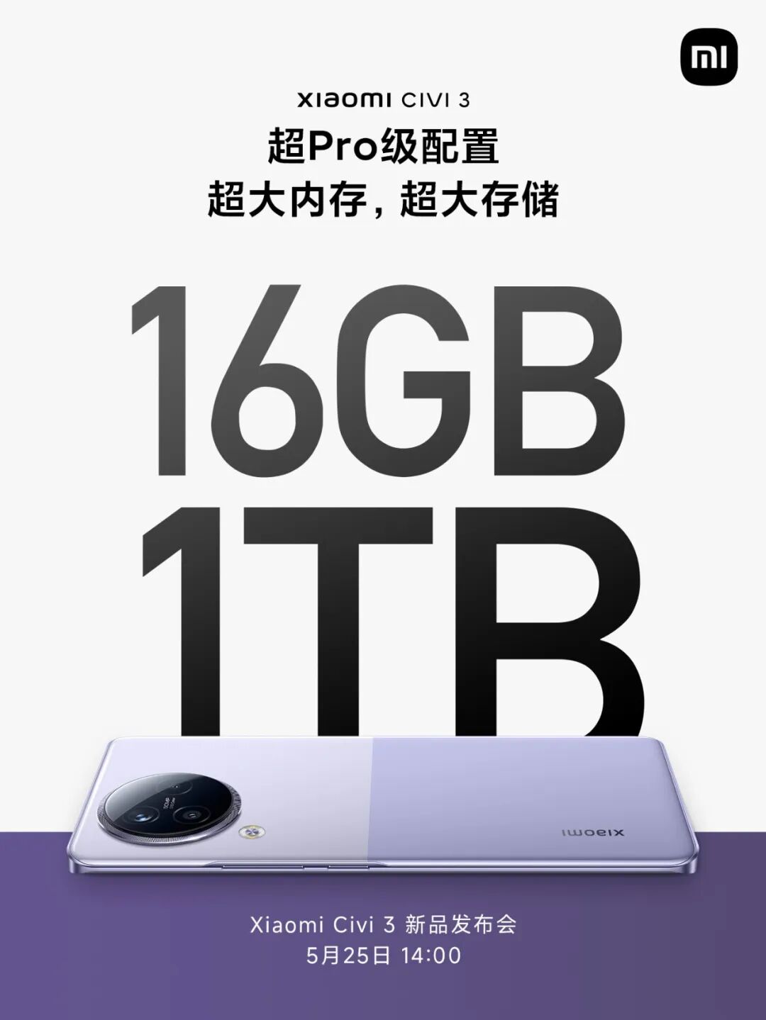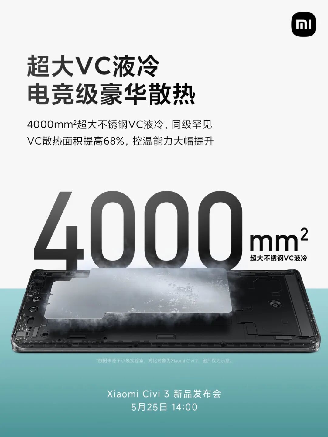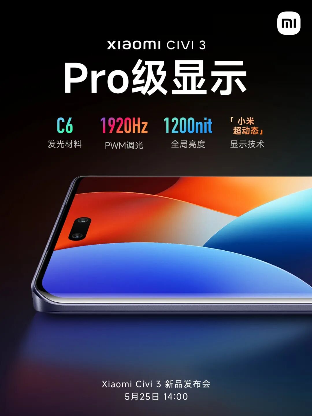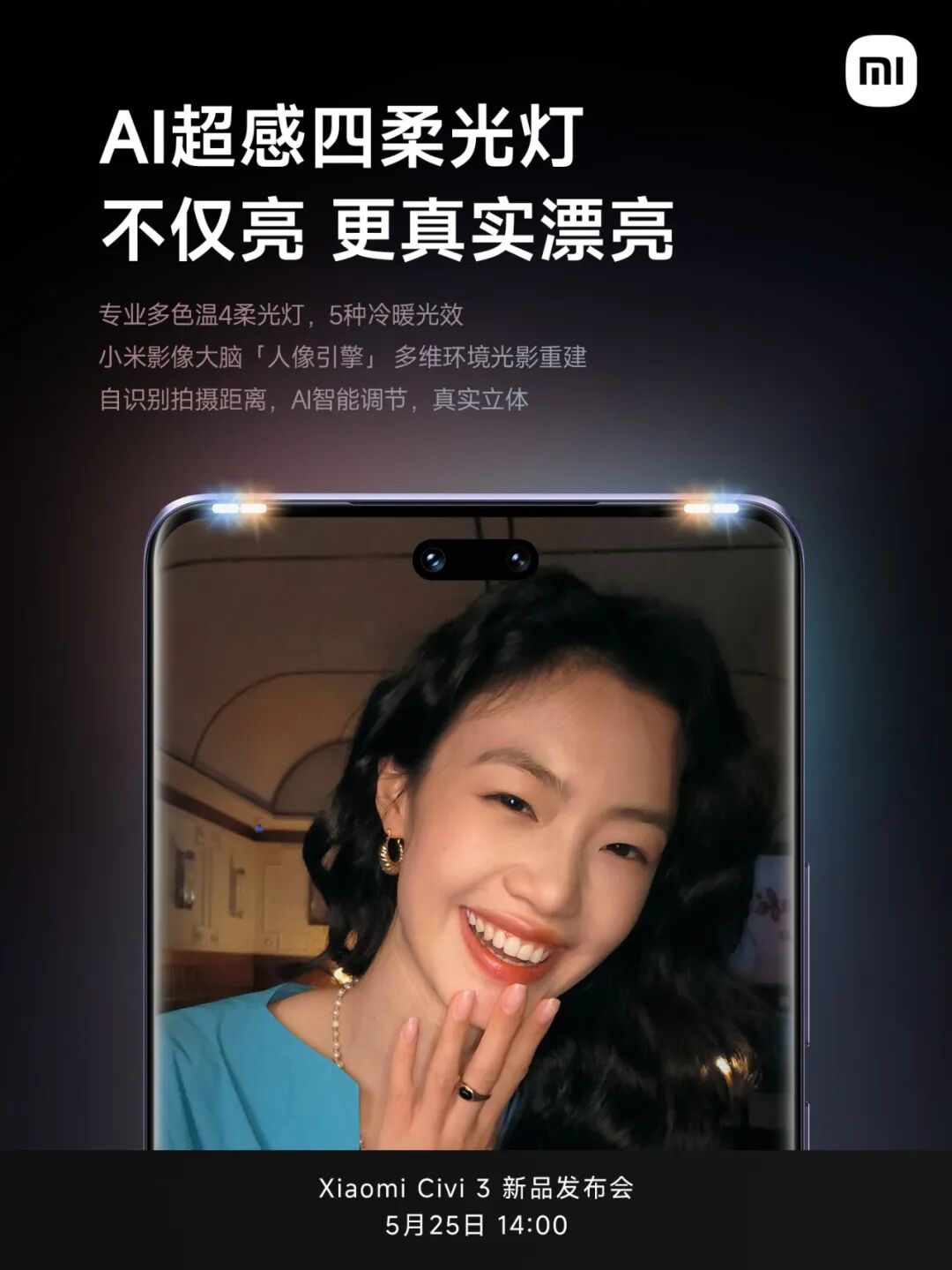 小米Civi 3将于5月25日14点也就是明天下午2点发布,这几天官方预热了更多信息,来给大家简单整理下。