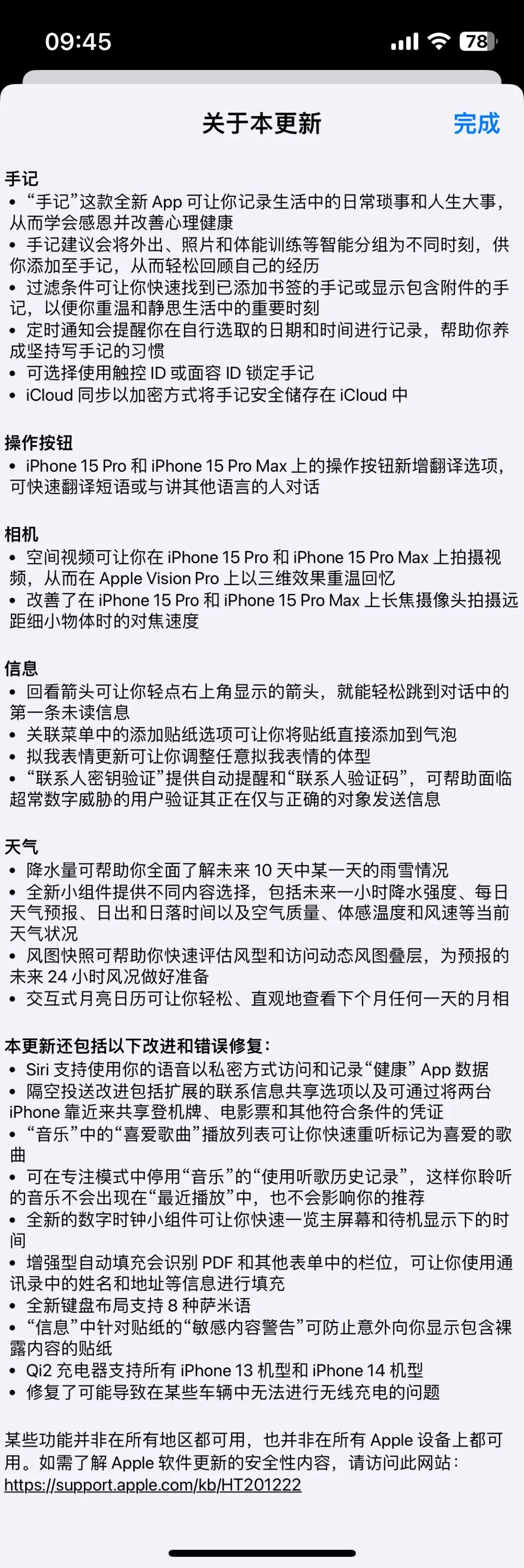 据介绍iOS 17.2感知最明显的变化在于:新增“手记” App ,可以让用户记录生活中的日常琐事和人生大事,手记建议会将外出、照片和体能训练等智能分添加至手记,帮助你养成坚持写手记的习惯,从而轻松回顾自己的经历,以便你重温和静思生活中的重要时刻。
