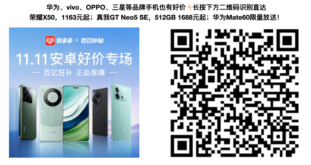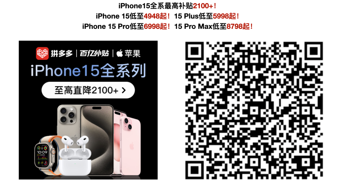 对于等等党来说,一年之中换手机优惠力度最大的莫非618和11.11两大时间段,11.11大促巅峰期到!拼多多百亿补贴力度拉满!活动会场可领至高530元福利券包,活动价叠福利券折上折!iPhone 15全系列至高直降2100元!我们小编整理了一篇购机推荐,来看看有没有你需要的好价~开头例行强调,这次依然是从不玩套路的拼多多百亿补贴活动中精选整理而成,一年一度11.11,拼多多优惠力度一如既往地大,记得先领券再逛!👇🏻