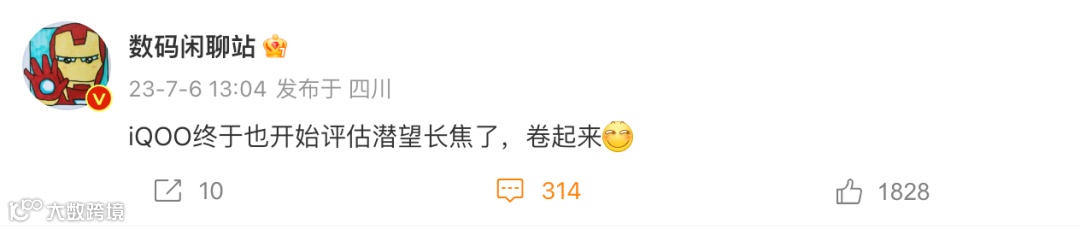 数码闲聊站爆料称iQOO开始评估潜望长焦,并表示预计新机不会标配,至少iQOO 12这代样机还是直立长焦方案,而iQOO 12 Pro是否能上潜望长焦,目前暂时不清楚。