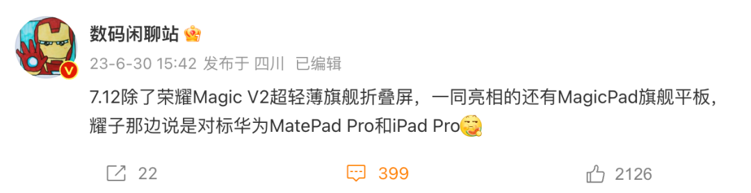 近日,荣耀终端有限公司CEO赵明在MWC2023大会上预热荣耀Magic V2将于7月12日发布,或带来革命性的折叠屏体验。而据爆料,届时还会有一款旗舰平板新品。