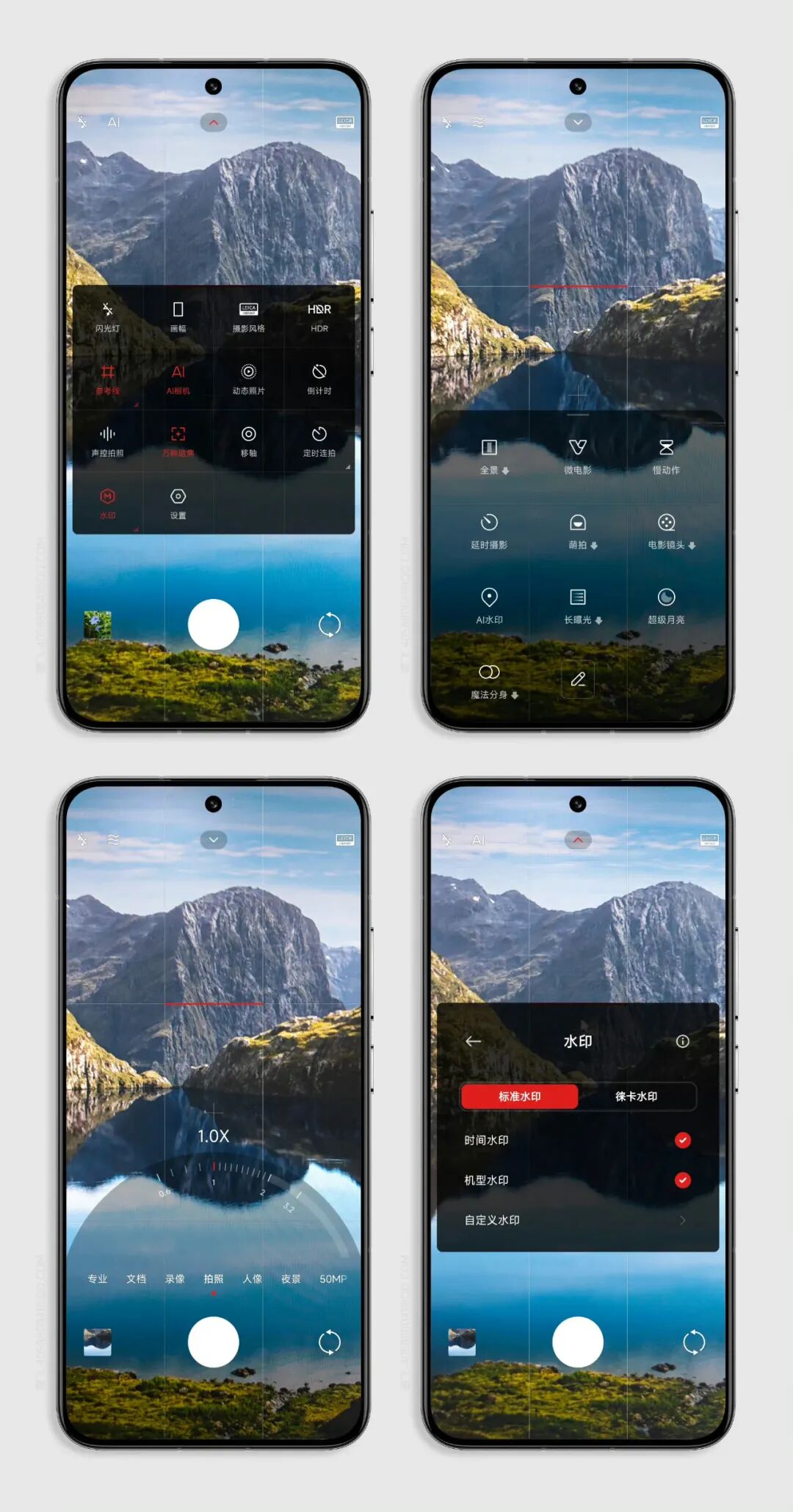 雷军还晒出了一组小米13相机界面的截屏,可以看到不只有变焦转盘,各种功能、水印设置也都有展示,小米13的新版交互方案和Ultra一致。不知道该交互方案未来是否还有可能“下放”给小米12S Ultra。