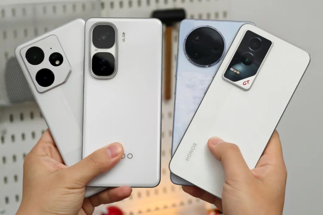 上图为真我/iQOO/红米/荣耀4台外观合影
