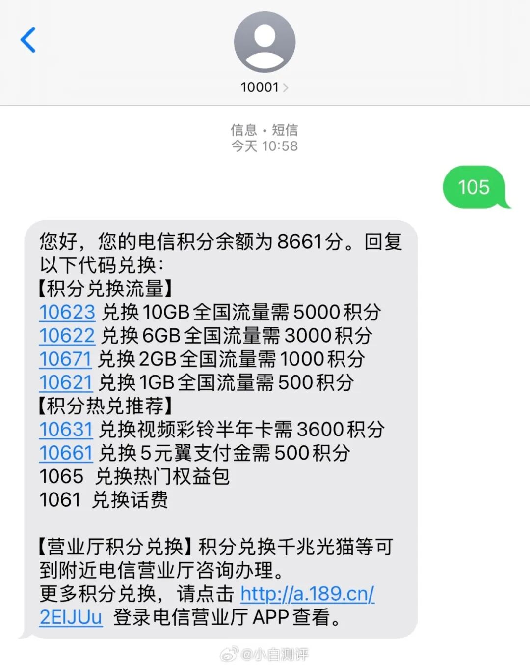 需要注意的是,部分地区运营商可能指令不一样,部分积分一定时间后可能会清零(以中国电信为例,积分是3年过期,具体可以在运营商相应的App中查看),所以提醒大家有空可以兑换下~