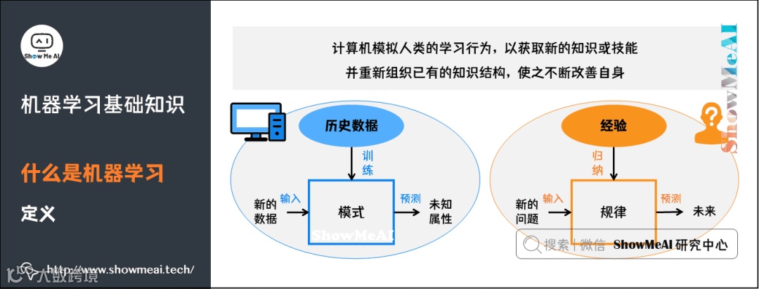 机器学习研究的是计算机怎样模拟人类的学习行为,以获取新的知识或技能,并重新组织已有的知识结构,使之不断改善自身。