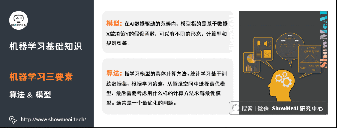 模型:在AI数据驱动的范畴内,模型指的是基于数据X做决策Y的假设函数,可以有不同的形态,计算型和规则型等。