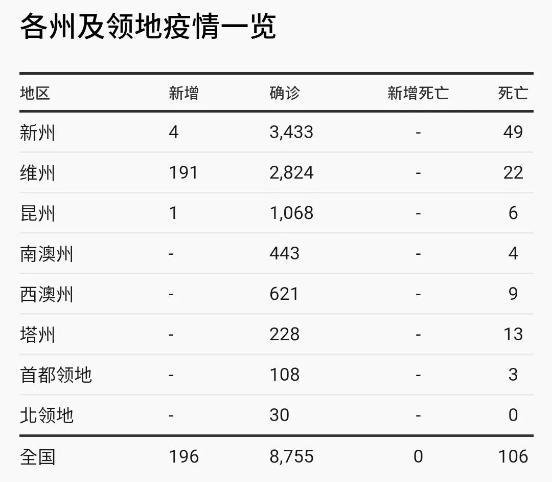 维州今日报告,过去24小时新增病例191例。