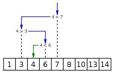 二分查找算法是一种在有序数组中查找某一特定元素的搜索算法。搜素过程从数组的中间元素开始,如果中间元素正好是要查找的元素,则搜素过程结束;如果某一特定元素大于或者小于中间元素,则在数组大于或小于中间元素的那一半中查找,而且跟开始一样从中间元素开始比较。如果在某一步骤数组为空,则代表找不到。这种搜索算法每一次比较都使搜索范围缩小一半。折半搜索每次把搜索区域减少一半,时间复杂度为Ο(logn) 。