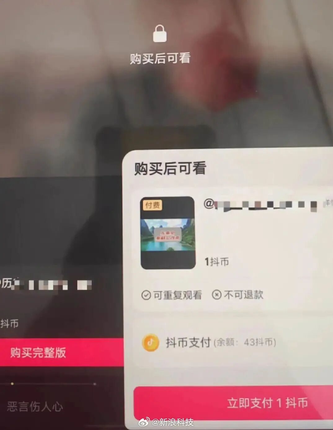 据新浪科技报道,抖音于近期开始测试视频内容付费服务,用户在平台观看部分视频内容时,可能需要付费才能解锁全部的内容。消息登上热搜后,也引发了广泛讨论。
